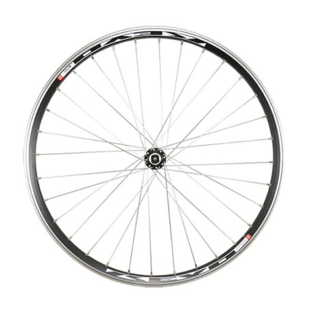 Jante : noir aluminium Mach1 revo à oeillets double paroi Profil : 22mm Moyeu : aluminium, Shimano TX500 cône/billes, axe creux Rayons : galva argent, 32T. Poids : 1000g ETRTO : 19-559